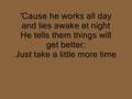 'Cause he works all day and lies awake at night