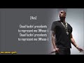 "Dead *fuckin* presidents to represent me (Whose...)"
