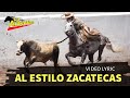 listo mi traje de charro en esa espuelas floreadas listo y hasta el partidero comenzaron las coleadas a cualquier toro ligero ese mi cuaco lo alcanza y al estilo Zacatecas se oye tocar una banda.
