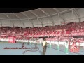 Hoy he vuelto escarlata ha llegado el momento, hoy nuestros jugadores, van ha poner el pecho, y ha llegado tu hinchada te alienta donde vayas la que toma vino y fuma marihuana, y en todas partes soy vago y atorrante y está banda loca si tiene aguante vamos, vamos mechita, yo quiero dar la vuelta y aunque ganes o pierdas yo a vos te sigo iguaaaal