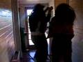 tirada en los lavabos
