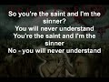 You´re the saint and I´m the sinner