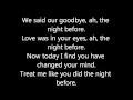 We said our goodbye, ah, the night before