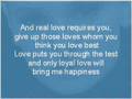 And only loyal love will bring you happiness